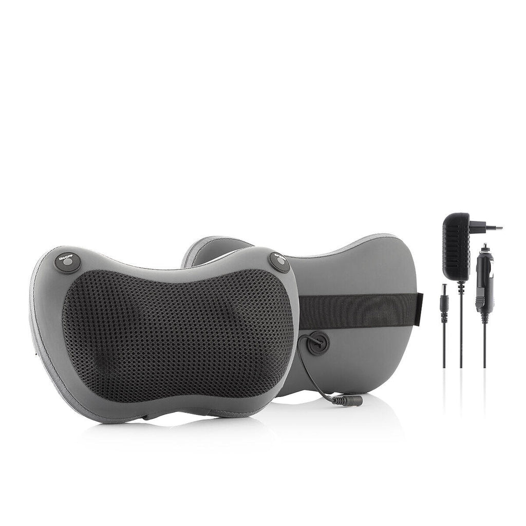 Un masajeador corporal tipo shiatsu con un diseño moderno y compacto para facilitar su uso, transporte y almacenaje, ya que ocupa menos espacio y es más ligero y cómodo de usar. Este masajeador eléctrico y ergonómico es muy versátil y adaptable, ya que es apto para un masaje general integral, pudiendo utilizarse en cualquier parte del cuerpo (cuello, espalda, lumbares, piernas, etc.). Ideal para combatir el estrés proporcionando un masaje relajante y reparador, obteniendo así un agradable efecto de alivio y descanso. Dispone de 4 cabezales rotativos y bidireccionales que realizan movimientos circulares muy beneficiosos, permitiendo cambiar el sentido de giro. Su función calor es independiente (puede activarse o no, según se desee) y consiste en luz infrarroja que potencia la sensación calmante de bienestar. Cuenta con apagado automático y velocidad regulable para seleccionar el nivel de intensidad deseado, según las necesidades y preferencias. Además, su cinta elástica trasera es perfecta para sujetar el masajeador en el respaldo de una silla, en un reposacabezas de coche, etc. Incluye adaptador de corriente y cable adaptador para el coche.