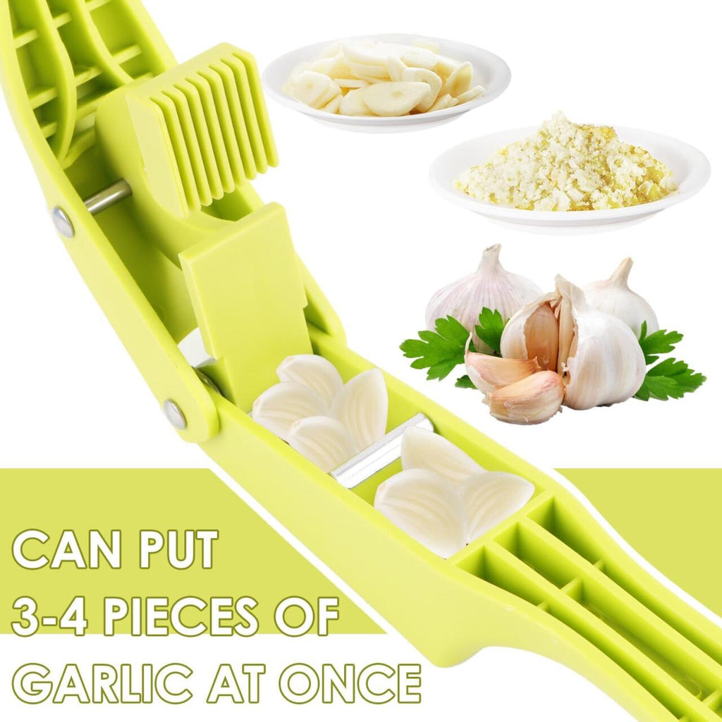 • 2 en 1: Ranuras separadas para triturar y cortar ajo simultáneamente.